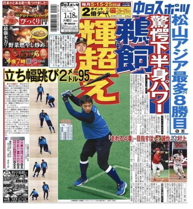 昨季のMVPで本塁打王の村上は188センチ、97キロの体格ながら2年連続で2桁となる12盗塁を記録した。鈴木も過去3度2桁盗塁を達成している。鵜飼にもそんな「走れる4番打者」を担える可能性があるというわけだ。...