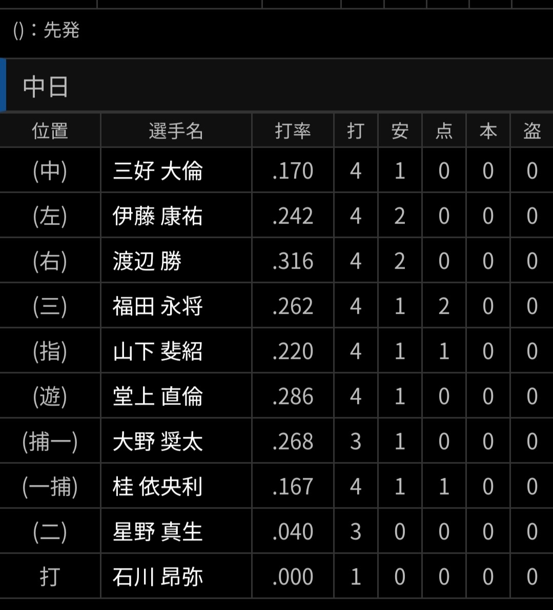 中日の一軍野手に対する皮肉か何か?