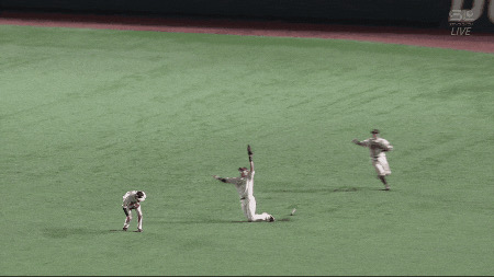 足もつれて転ぶ外野手って2014のオリ竹原以来やろ